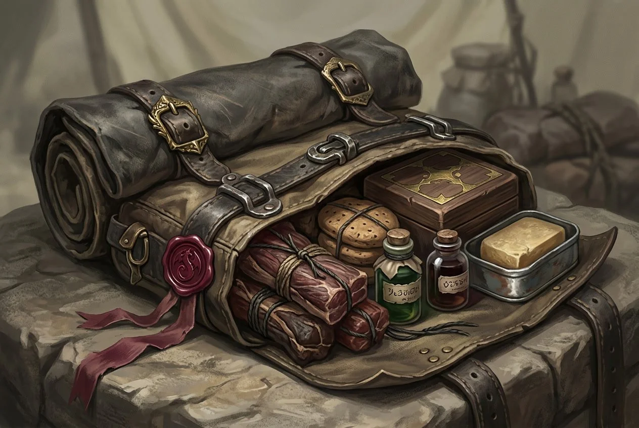 Developer’s Notes: Tracking sustenance day over day is often petty table time. A hand wave. The Nourishment System so filled with recovery and buffs makes a Character taking a moment to eat or drink in the middle of things or shortly after to prepare them for the next possible engagement both mechanically feasible and roleplay appropriate, instead of senseless tracking of a burden often ignored.